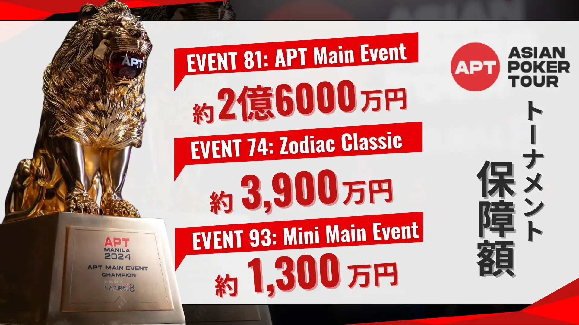 なんといってもAPT Manila 2024 最大規模、かつ最高の保障額のEvent 81:APT Main Eventが注目されます。各国のプロも多数の参戦が見込まれており、壮観で華やかなイベントになることは間違いありません。