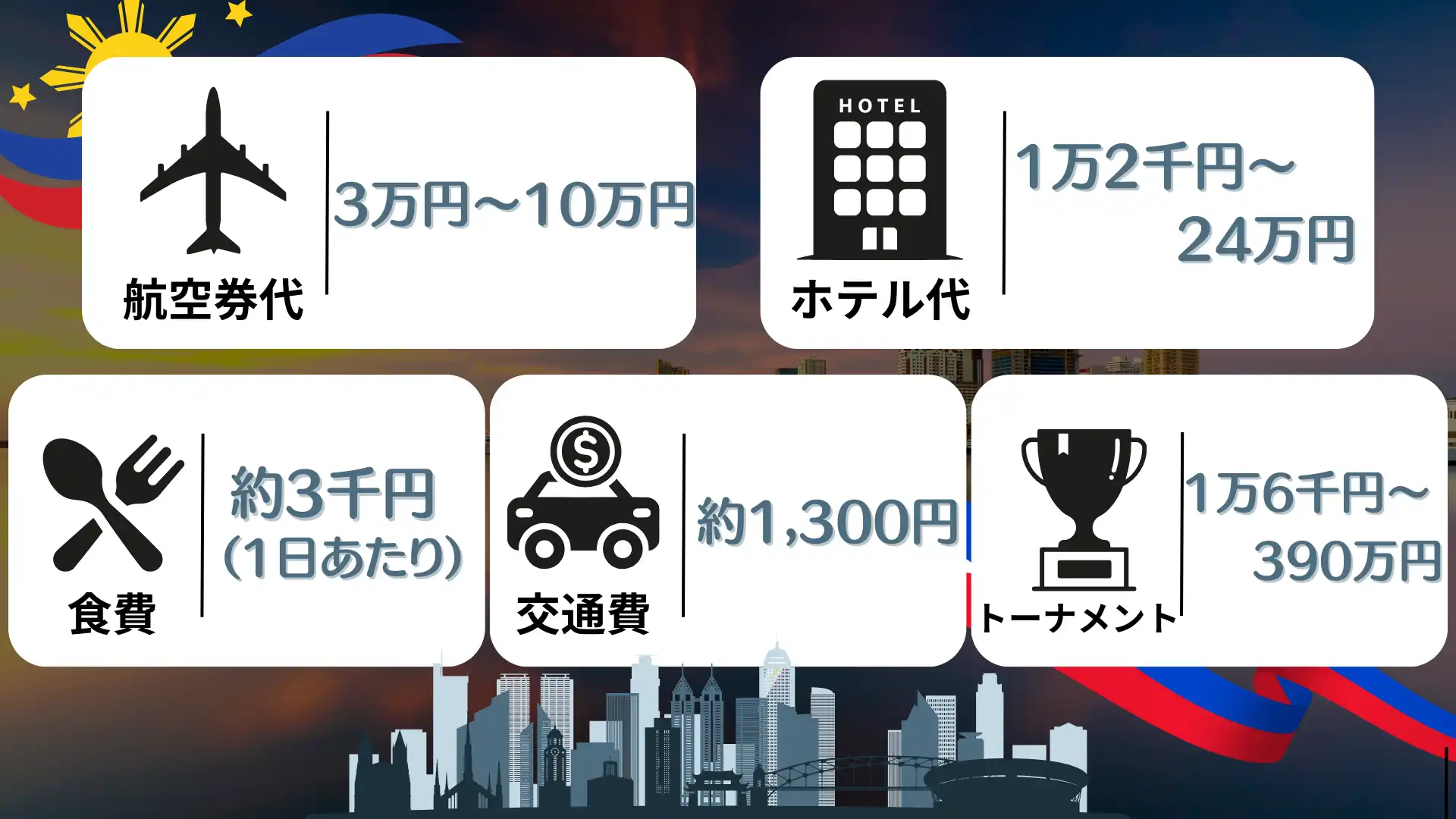 トーナメント代 | 約16,000円(6,000Php) | 1,500,000Php(約390万円) |