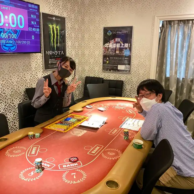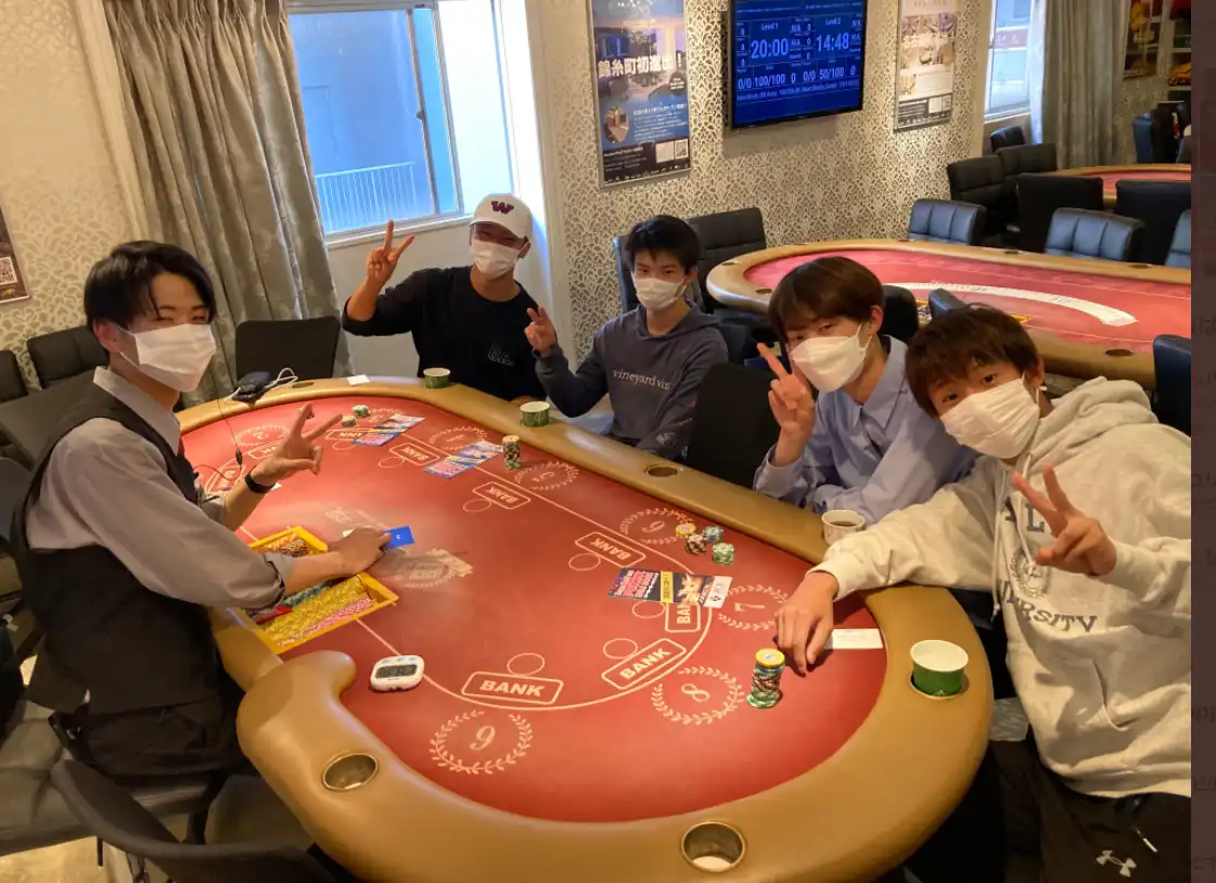 消毒は店員さんだけでなく、お客さんも含まれるという徹底ぶりです。こまめな消毒があることで、集中してポーカーを楽しむことができると言えますね。