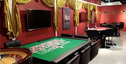 <カジノヴィーナス>豪華な内装で本場海外の雰囲気が楽しめる模擬カジノ。ディーラーは全員日本カジノスクールの卒業生です。
