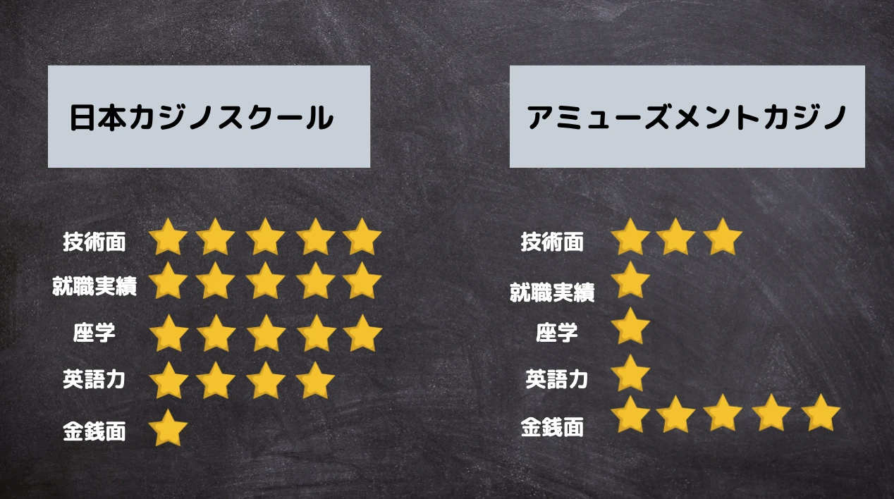 日本カジノスクールで経験を積めば将来的に役立つでしょう。