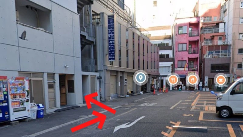 路地を数十メートル進んで、駐車場の先に銀座ビバリーヒルズがあります。